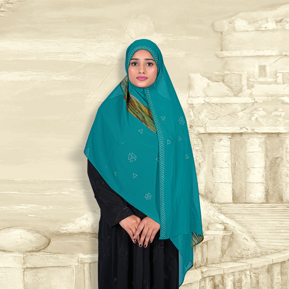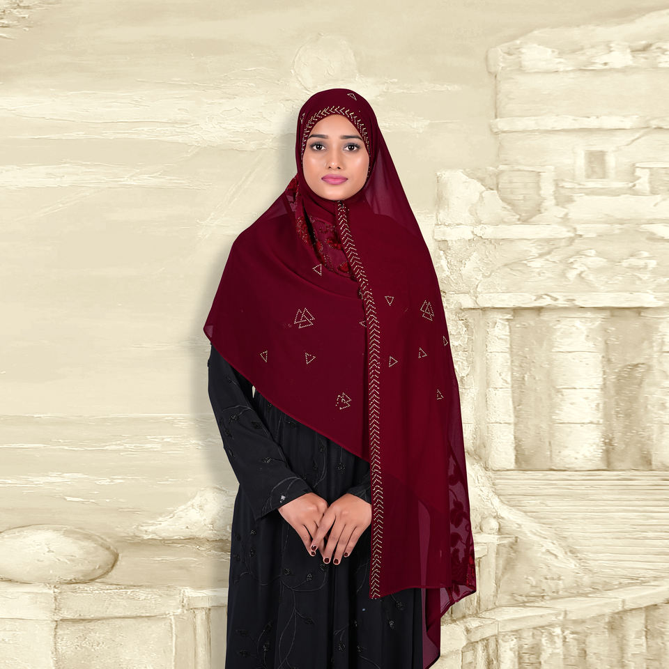 Hiyab Modesto Georgette con Parche de Terciopelo, Largo, Duradero, Transpirable, de Secado Rápido, Ligero, Elegante, Pañuelo Islámico para la Cabeza, Prenda Premium para la Oración