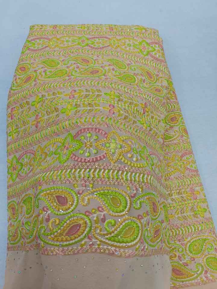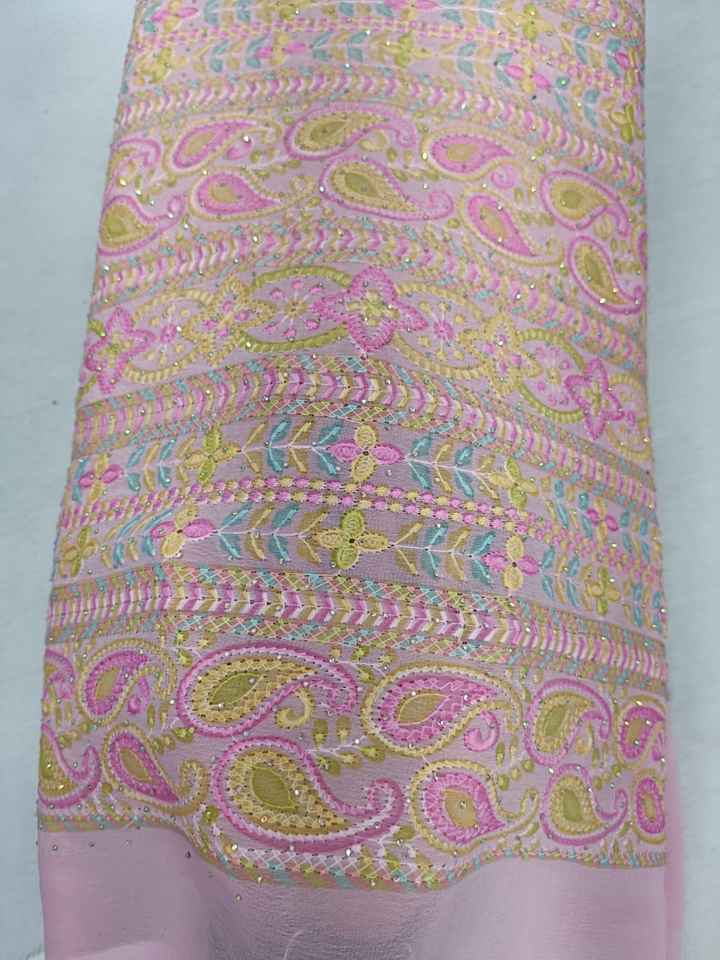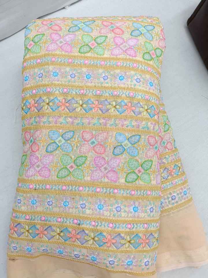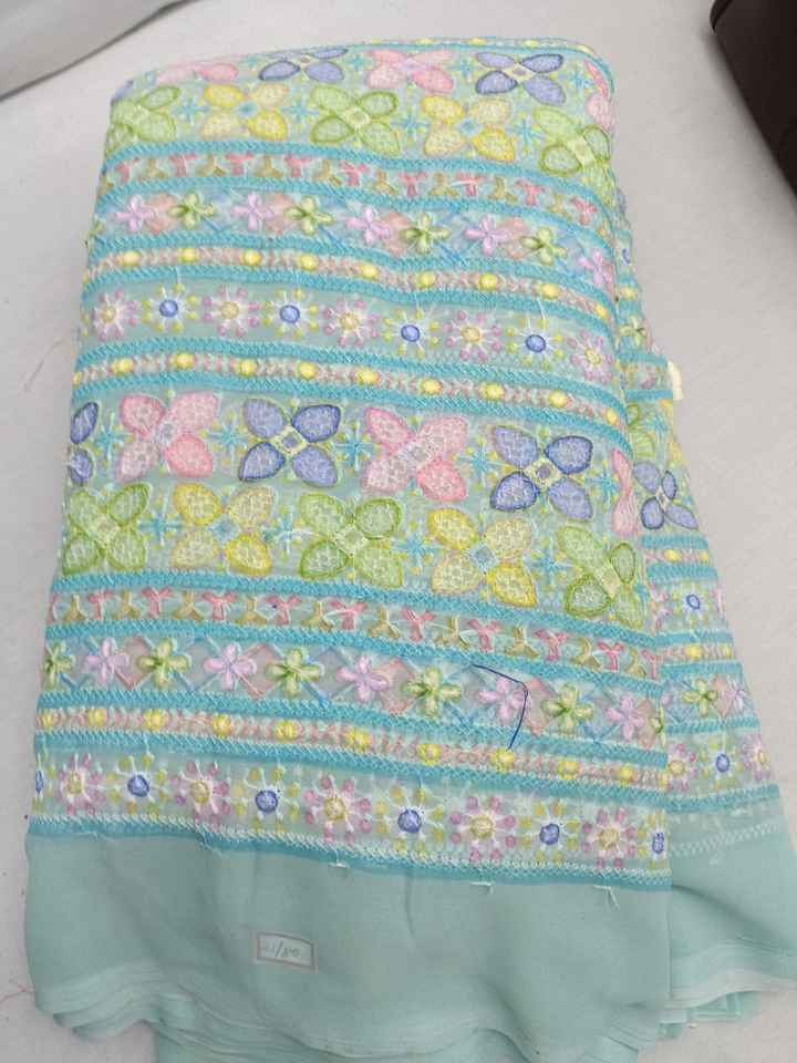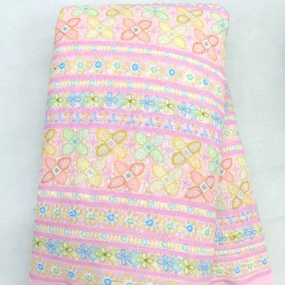 Georgette Multi Colour Sifli Work Fabric 65 GSM 44 Inch Width Sifli Print Embroidery Material for Designer Suits and Ethnic Wear