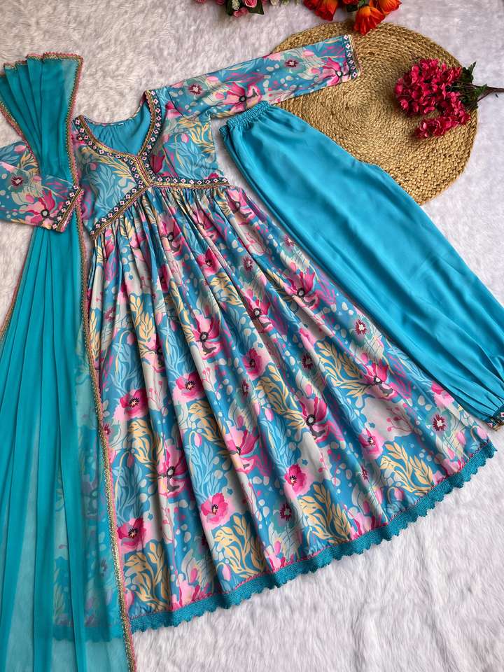 Vestido de trabajo con espejo de hilo estampado Georgette para mujer estilo indio y pakistaní hecho de poliéster