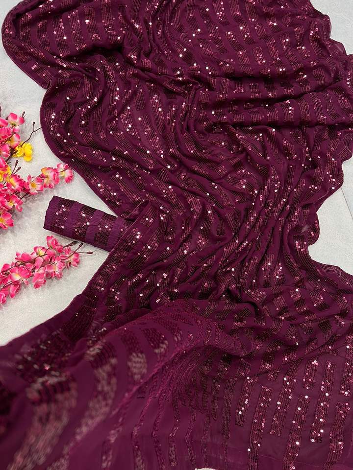 Georgette-saree de trabajo con bordado de secuencia para mujer, blusa de fiesta india, ropa para mujer, saree, barato, precio bajo, venta al por mayor