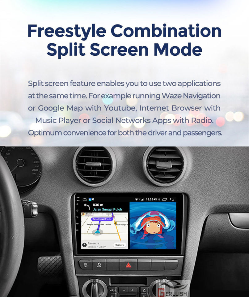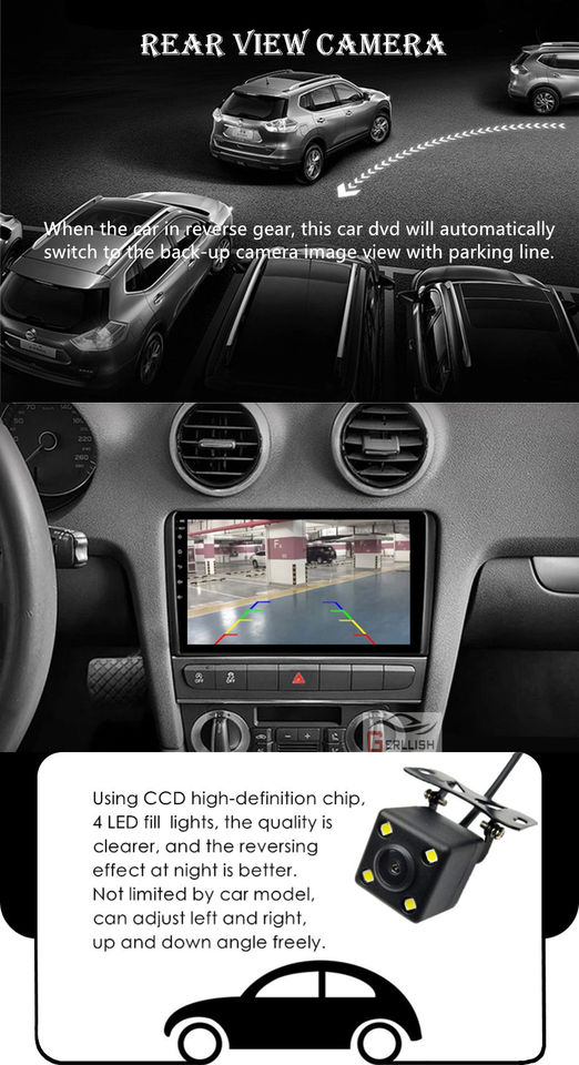 Gerllish Android Car Radio Estéreo Multimedia para REPRODUCTOR DE DVD navegación GPS incorporada para Audi A3 8P 2003-2012 S3 2006-2012 RS3