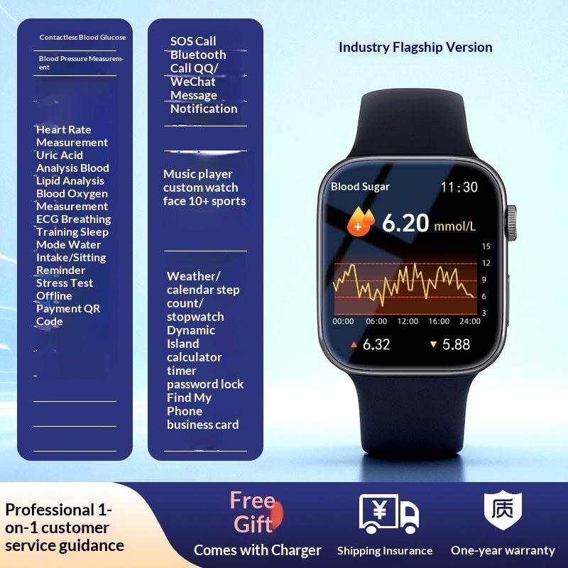 Chip de IA Alemán de Alta Precisión Sin Contacto para Medir Oxígeno en Sangre, Glucosa, Presión Arterial, Frecuencia Cardíaca, Llamadas Deportivas