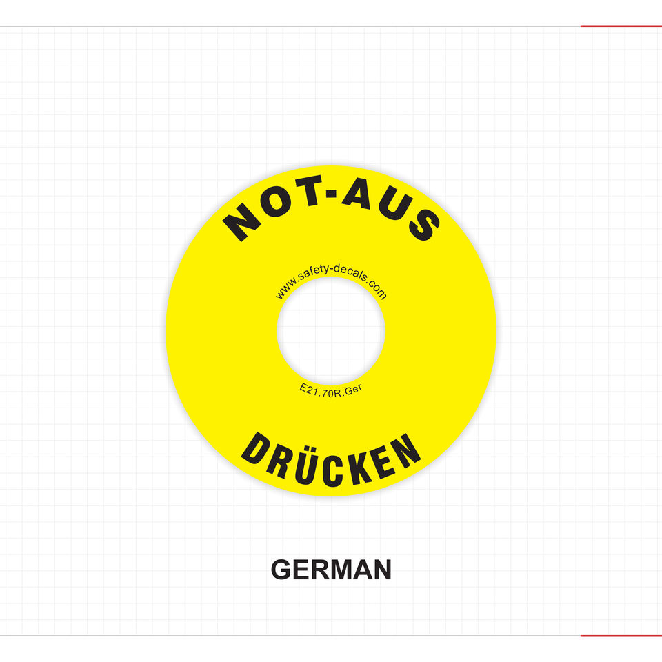 Etiqueta Adhesiva para Botón de Parada de Emergencia Alemán, Resistente al Agua, a los Arañazos y al Calor, Mate, Adhesivo 3M, Calcomanía de Seguridad E21