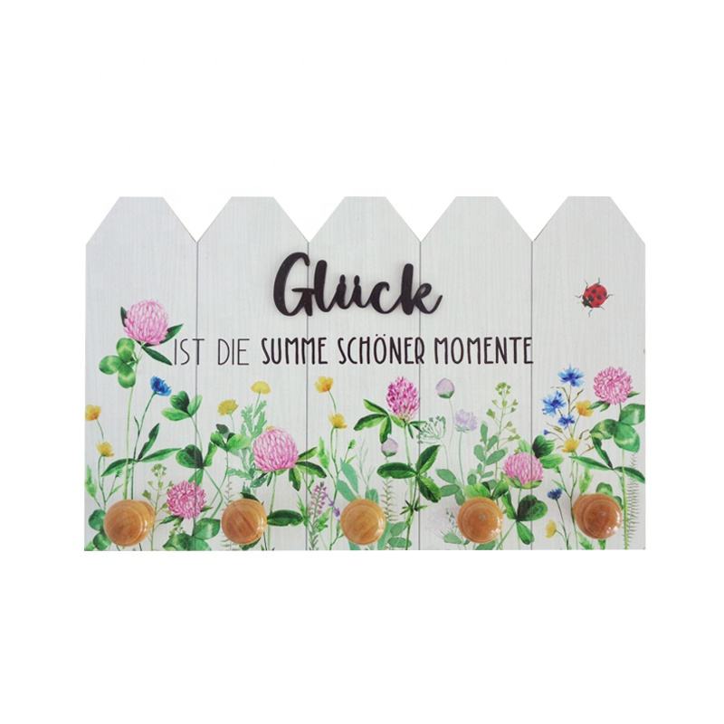 Letreros Rústicos de Madera Hechos a Mano en Alemán con 5 Ganchos de Madera, Perchero de Pared con Corte Láser, Decoración para Colgar en la Pared