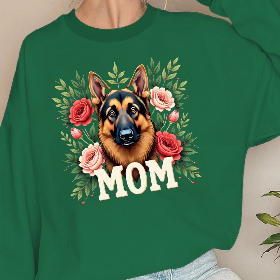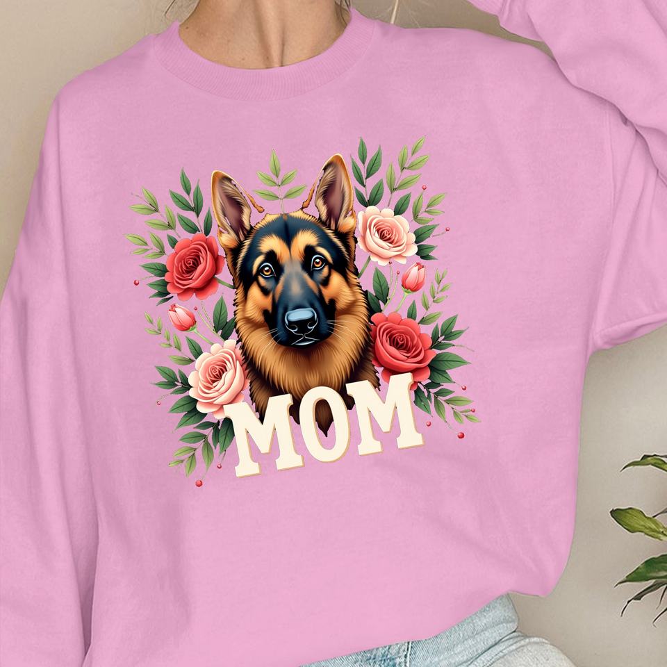 Pastor alemán con diseño floral Sudaderas estampadas para mujer Estilo informal de punto