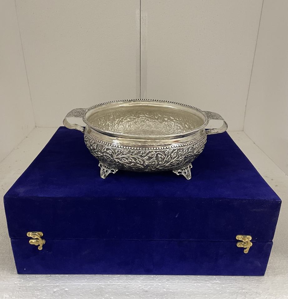 Cuenco decorativo de plata con grabado a mano para decoración del hogar, tazón de plata con grabado de Uruli, artesanía india, regalos de boda