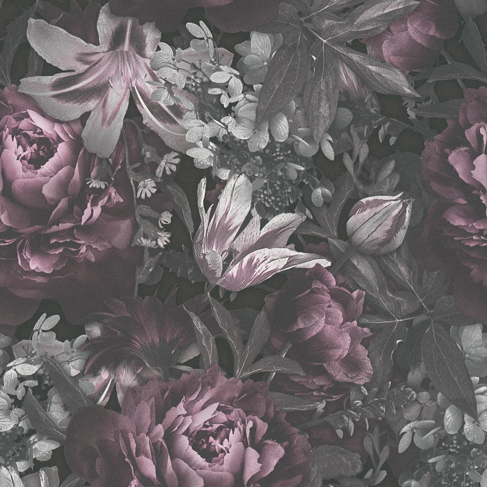 Rollos de Papel Tapiz Floral Hechos en Alemania, Morado, Negro, Gris, Vinilo No Tejido, Decoración del Hogar