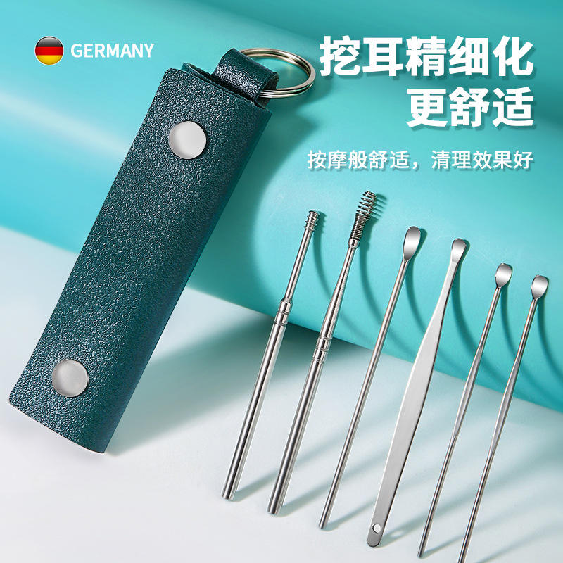 Juego de limpiadores de oídos de acero inoxidable de Alemania, kit de 6 piezas para limpieza de oídos, limpiador de oídos en espiral para eliminar la cera del oído