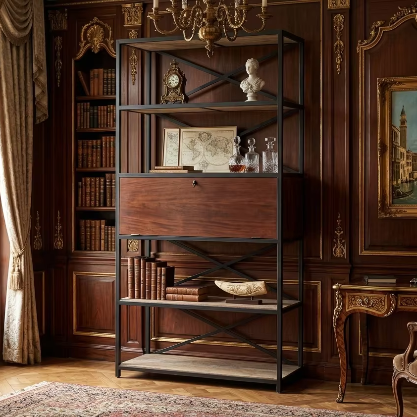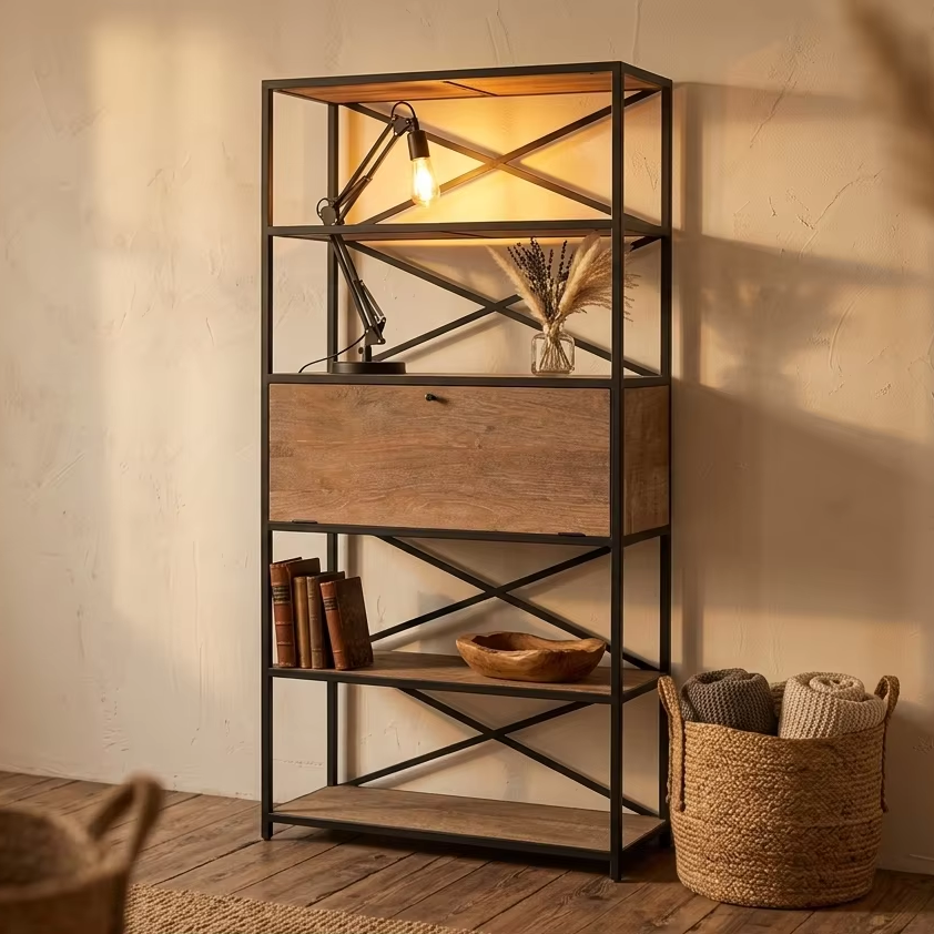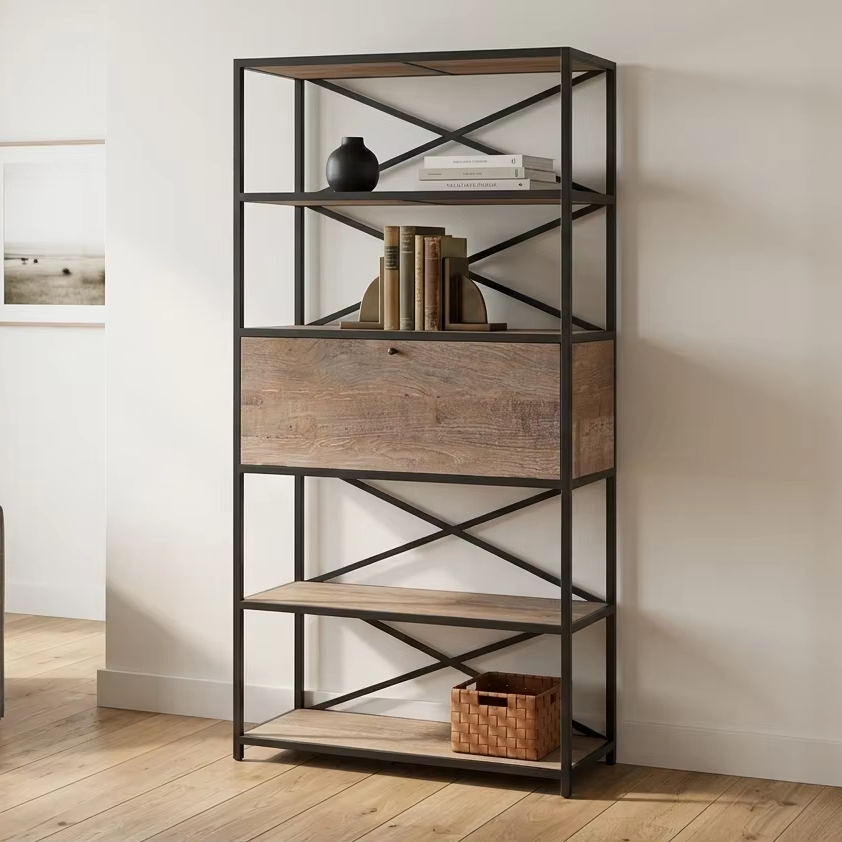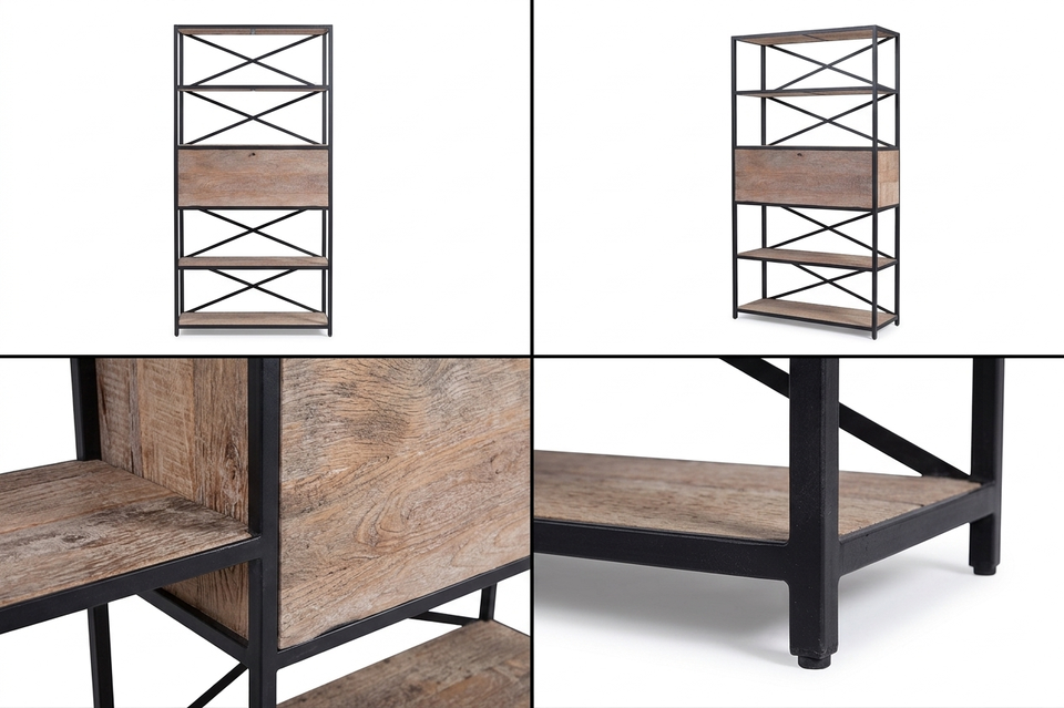 Estantería de Exhibición Vertical Moderna, Multifuncional, de Madera y Metal, Resistente y Ecológica, Marca Gerry Rack Premium Industrial
