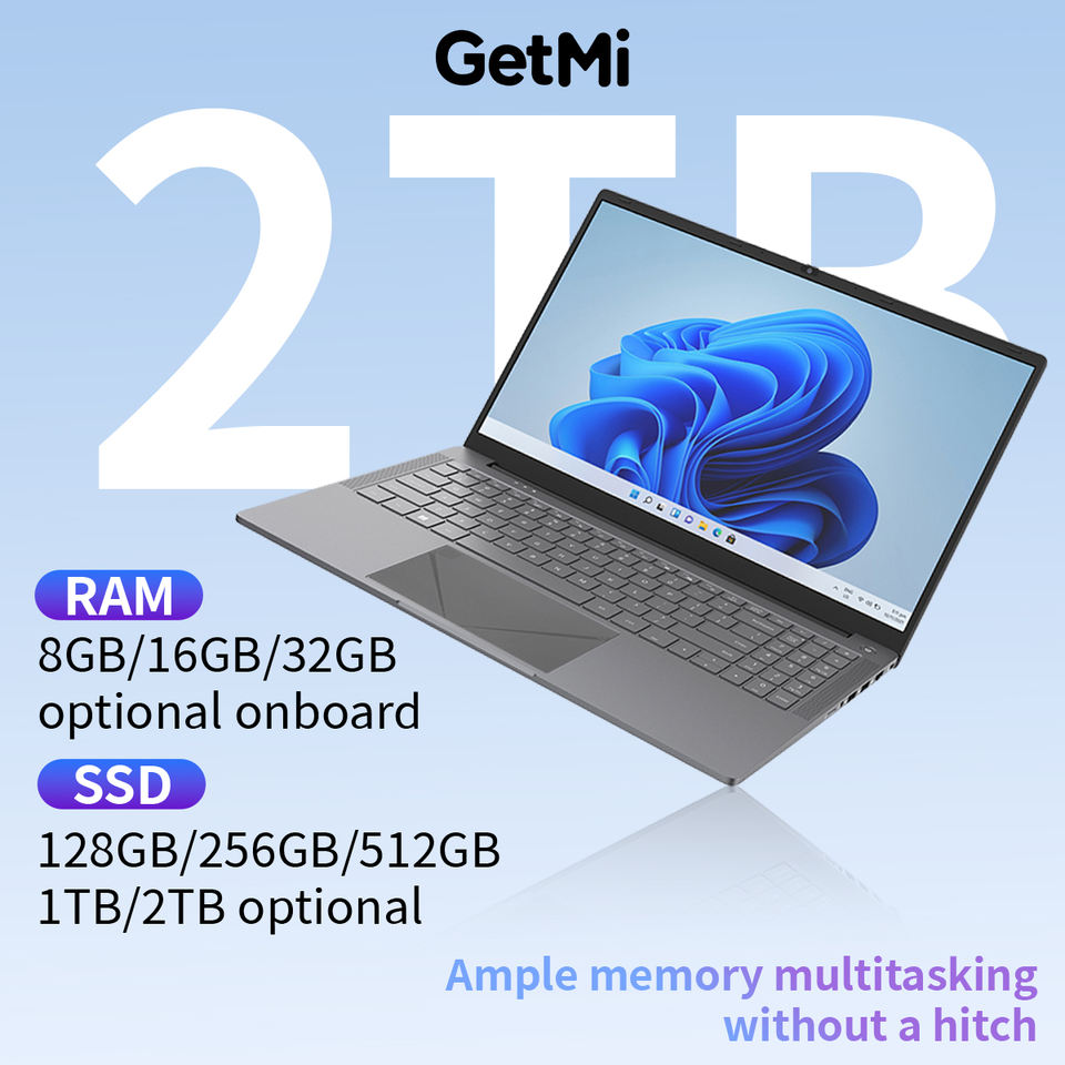 GetMi Pro 160E 15,6 pulgadas Intel 2.0 4 Core 8 hilos 128GB SSD 2,4G + 5,0G WiFi 2.0MP cámara portátil