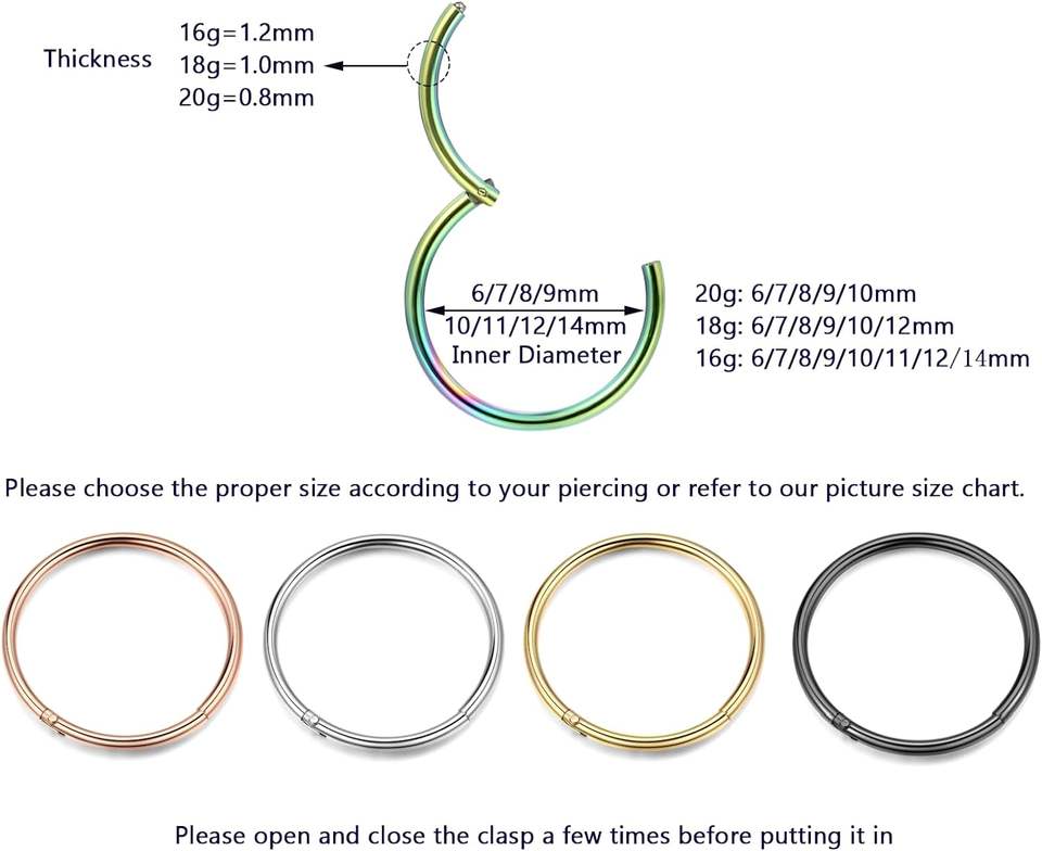 Getta 50 Uds titanio ASTM F136 anillos de nariz 20G 18G 16G juego de aro pendientes Tragus tabique Piercing cartílago Aro para boda hombres