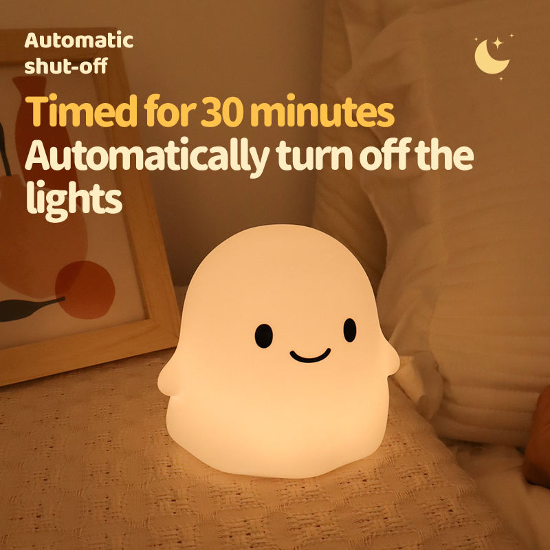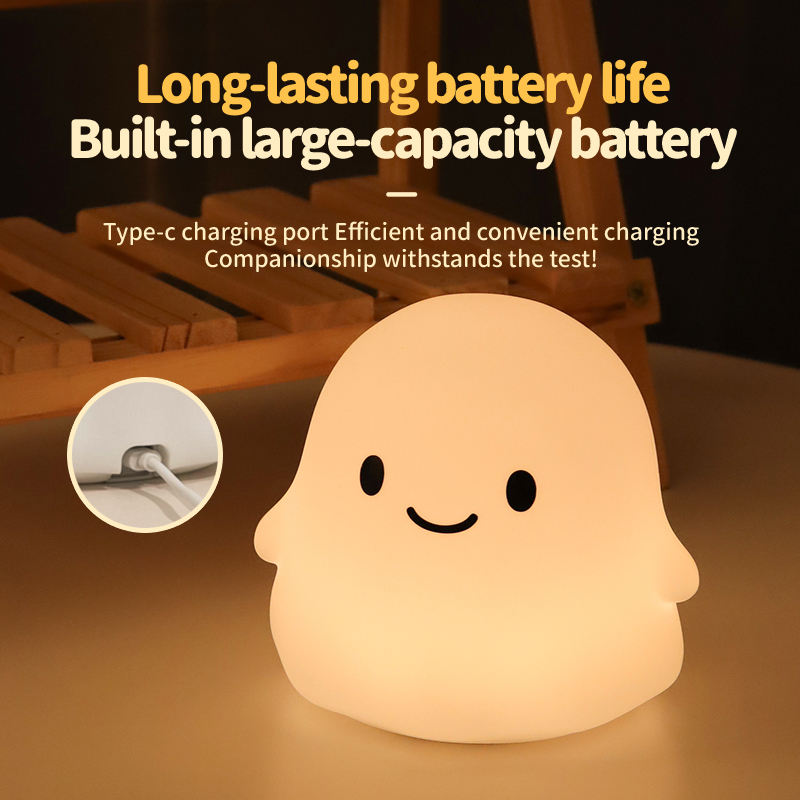 Lámpara Nocturna de Silicona con Forma de Fantasma, LED de Color Cambiante, Recargable por USB, Lámpara de Noche para Niños, Lámpara de Noche Suave al Tacto para Guardería