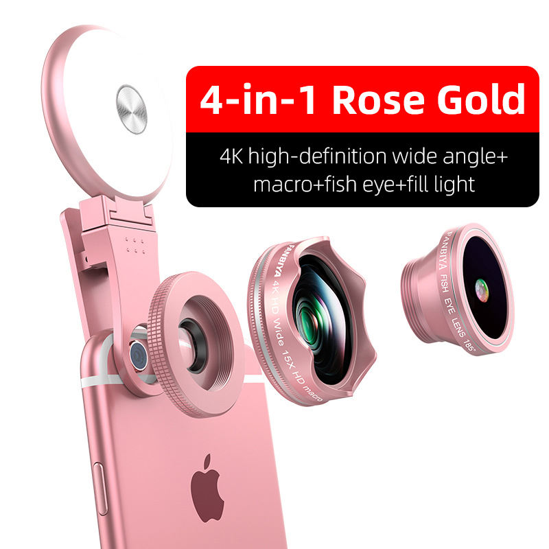 Lista del producto (4-in-1):Gran angular + Macro + Ojo de pez + Luz de relleno