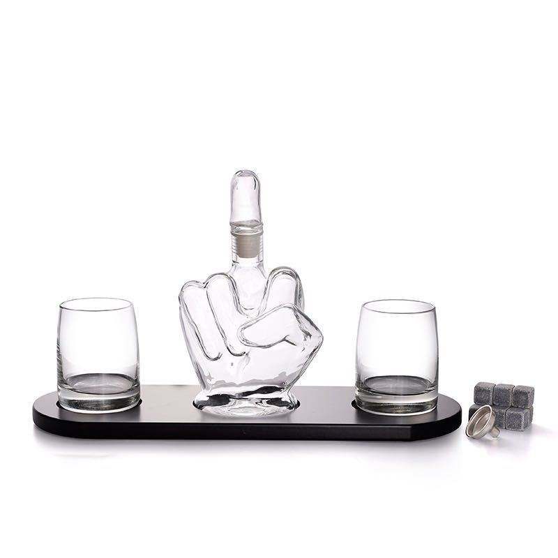 Accesorios para Regalo, Contenedor de Vino y Vasos con Dedo Medio, Juego de Decantador de Whisky con Dedo para Whisky Escocés, Tequila y Brandy