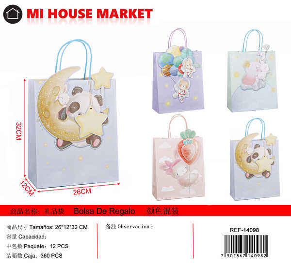 Bolsa de Regalo de Papel con Impresión a 4 Colores para Recuerdos de Fiesta, Venta al Por Mayor, Modelo 14098 (0+ Meses)