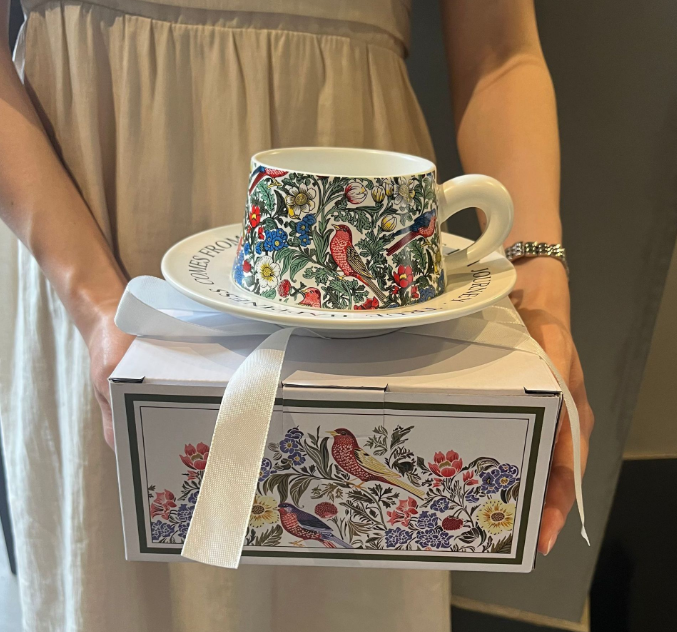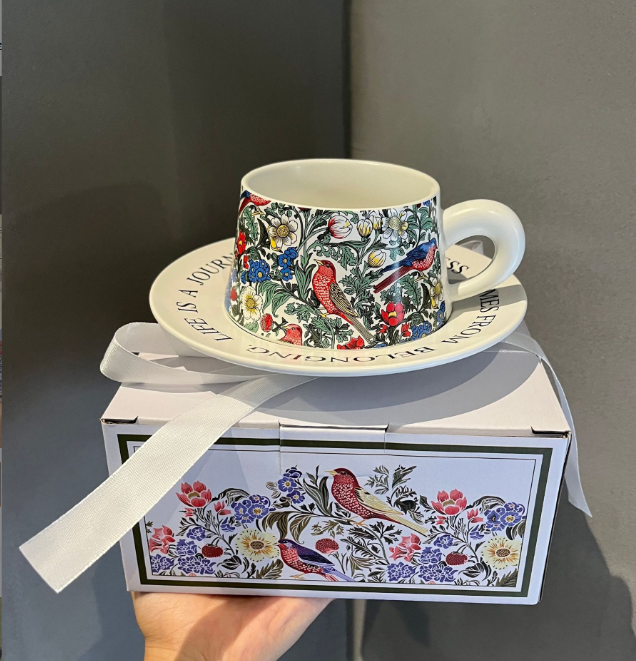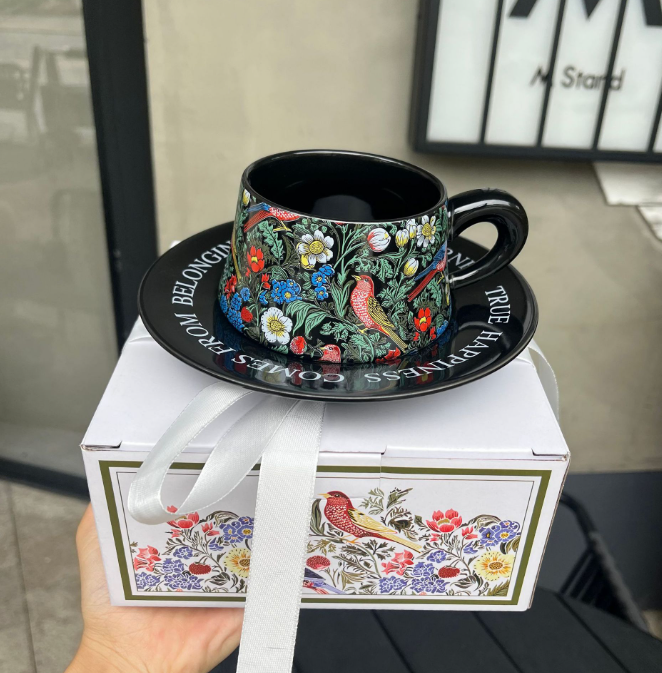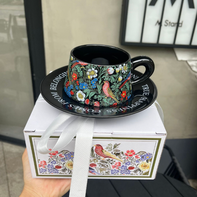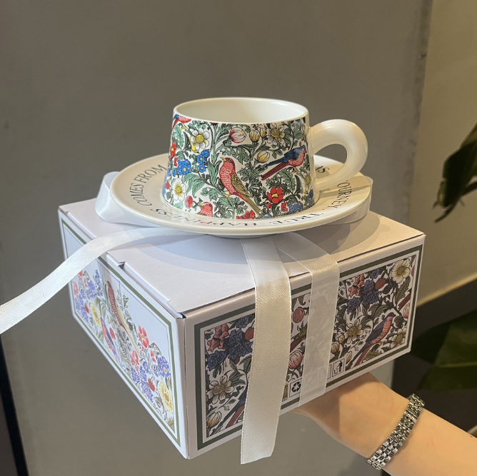 Regalo Compañero Regalo Colaboración Evento original Regalo Pintura Retro Flor y pájaro Taza de café Plato
