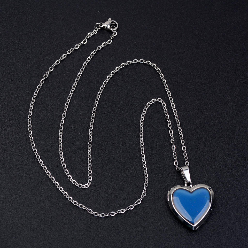 Collar con colgante de corazón y foto para mujer, joyería con Control de temperatura, recuerdo, Corazón