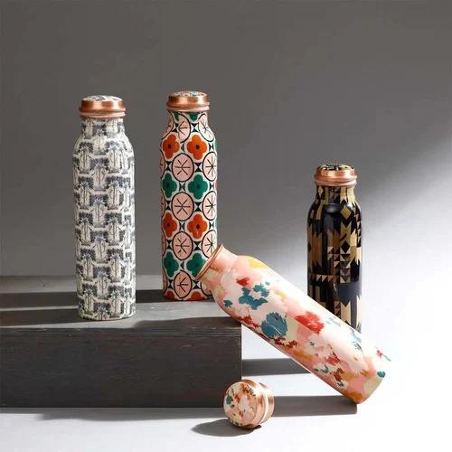 Botella de Cobre para Regalo con Arte Meena, Botella Ayurvédica de Cobre con Estampado de Mandala, Botella de Agua de Cobre Puro de 1 Litro con Diseño de Mandala