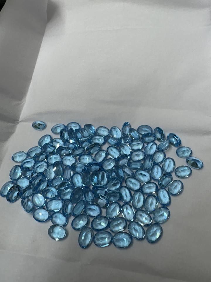 Gemas Sintéticas de Topacio Azul de 5-6 mm, Corte Ovalado de Rajastán, Pulido para Joyería