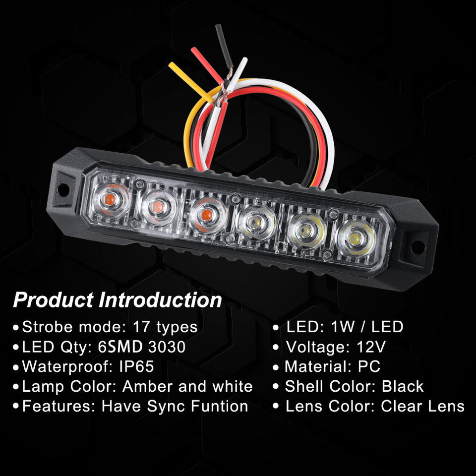 Gigo LED-04K Nueva Barra de Luces Estroboscópicas de Advertencia de Emergencia con 4 LED Ámbar/Blancos, 12V 12W