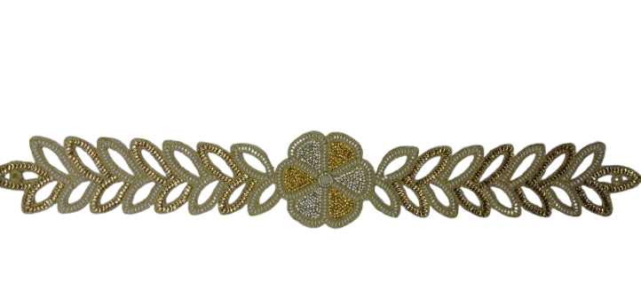 Aplique de Cintura con Corona de Laurel Dorada, Trabajo de Cordón Bordado con Enredadera Dorada de Ninfa, Kamarbandh