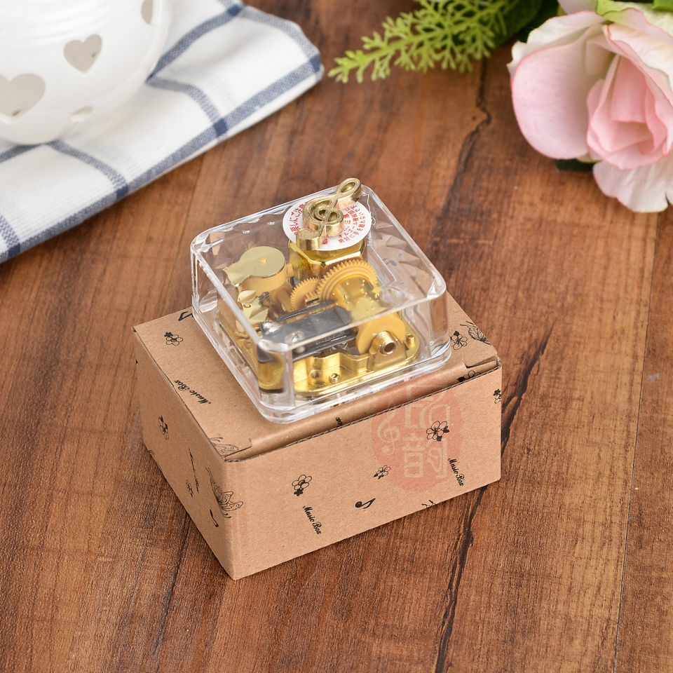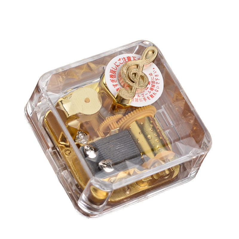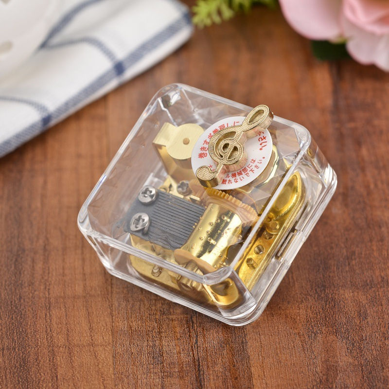 Caja de Música Cuadrada con Notas Doradas, Caja de Música de Acrílico, Regalo Artesanal, Decoración para Muebles, Regalo de Cumpleaños