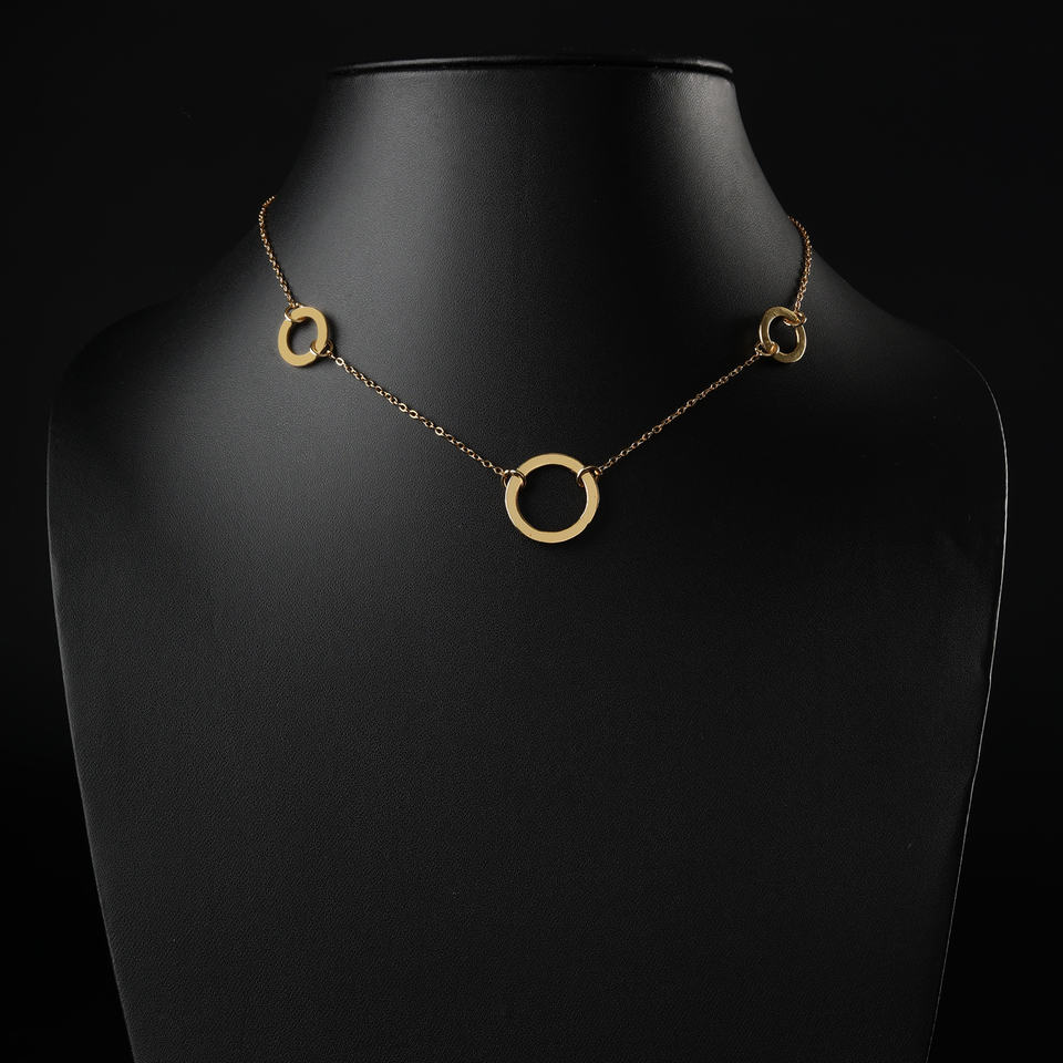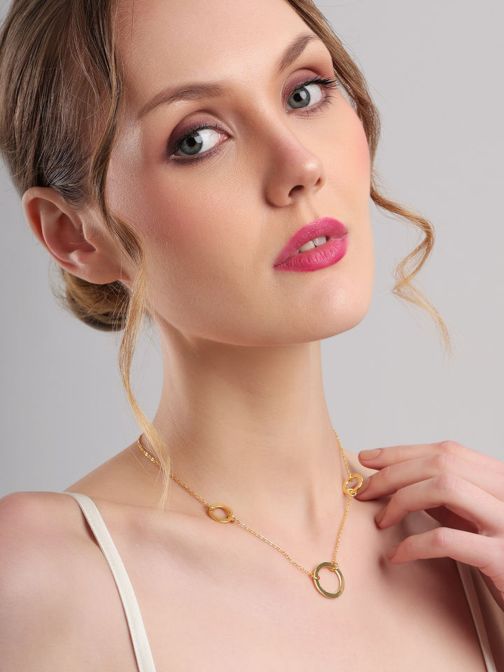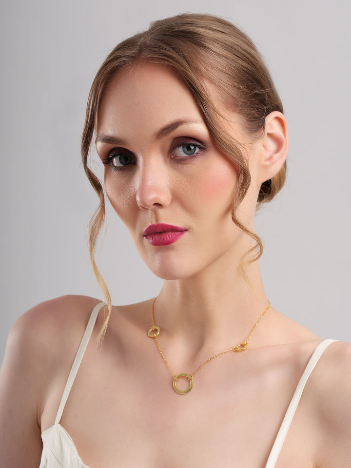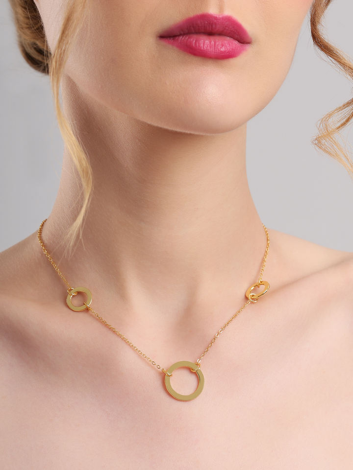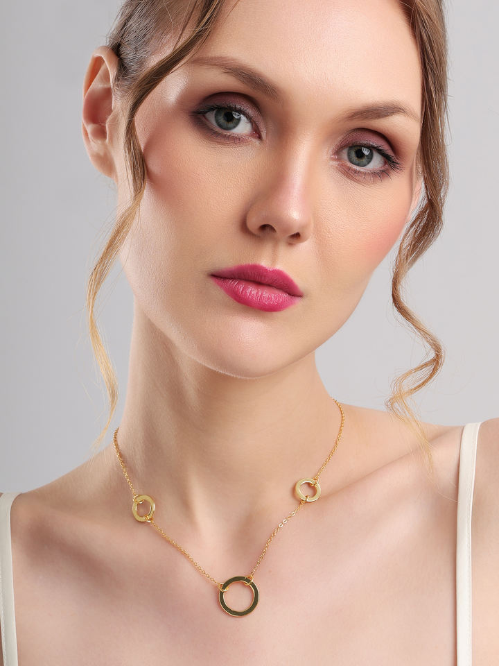 Collar de Cadena con Eslabones Dorados, Colgante de Triple Círculo Abierto, Tono Dorado, Joyería Minimalista Moderna y Elegante para Mujer