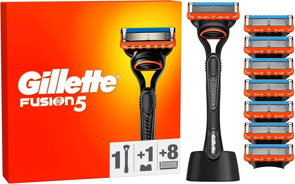 Gillette Fusion5-Sistema de afeitado para hombre, 1 Mango, 8 cuchillas de repuesto, con tira lubricante para un afeitado suave