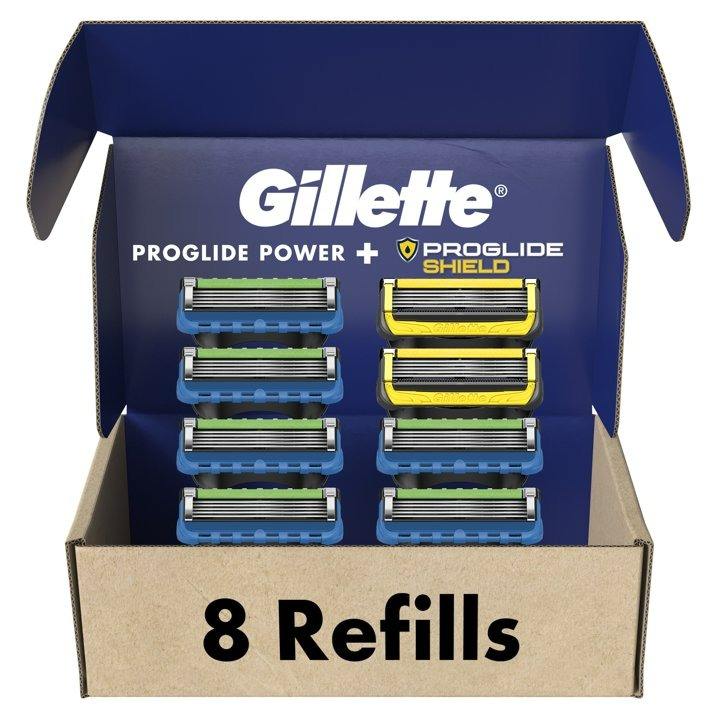 Gillette Men's Razor Blade Recambios, 6 Pro-Glide Power & 2 Pro-Glide Shield Cartuchos, 8 Unidades