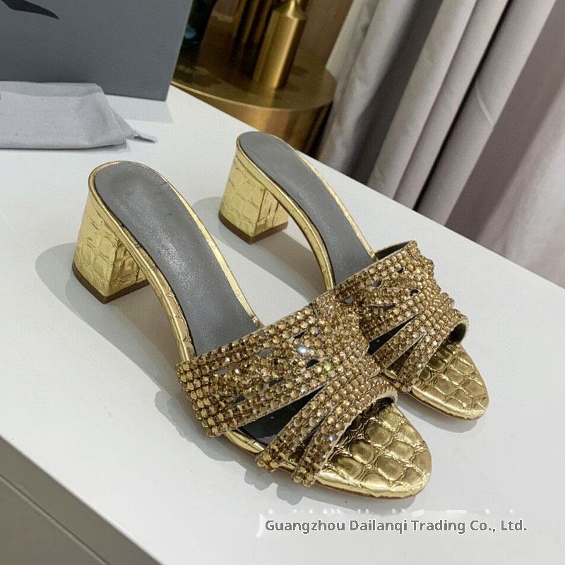 Sandalias Gina de Tacón Grueso con Diseño de Piedras, Cosidas a Mano, con Pedrería, Punta Abierta, de Una Sola Tira, Versátiles y Sexys