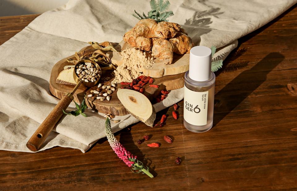 Ginger6 Suero iluminador de piel vegana Cuidado de arrugas antienvejecimiento con péptidos de niacinamida Ácido hialurónico Colección de nieve blanca