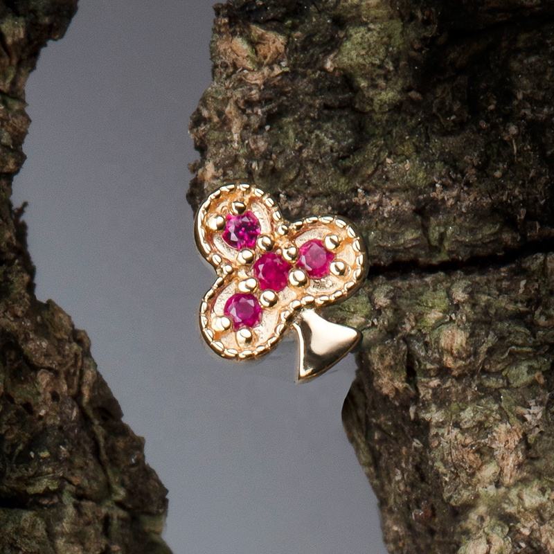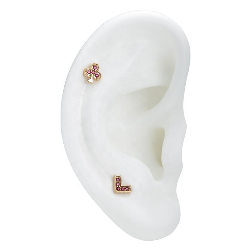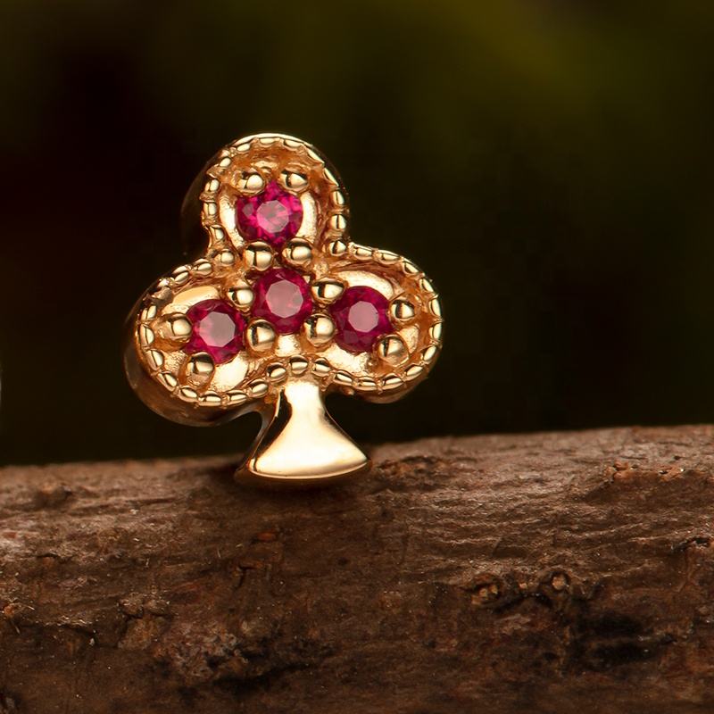 Giometal 18KT oro sólido diamante rubí y esmeralda clubes Threadless Press Fit End Tragus Piercing pendientes joyería del cuerpo al por mayor