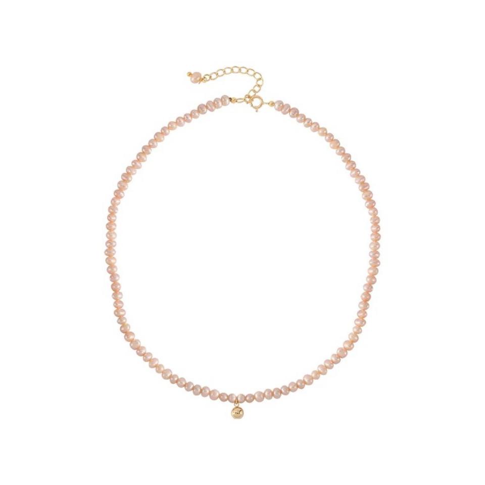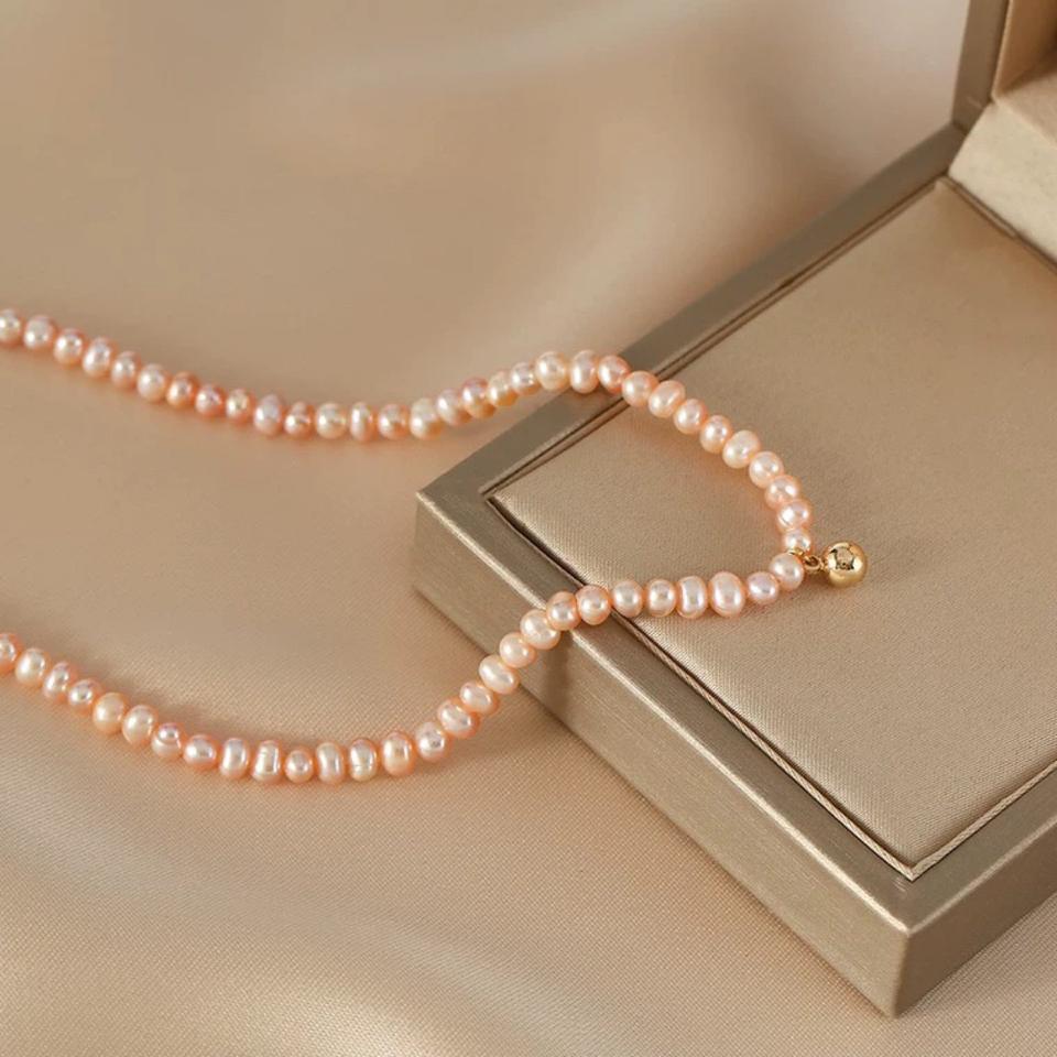 Collar de Perlas de Agua Dulce Rosadas para Niña con Cadena de Clavícula de Pequeños Granos Dorados, Diseño Simple y de Lujo Ligero
