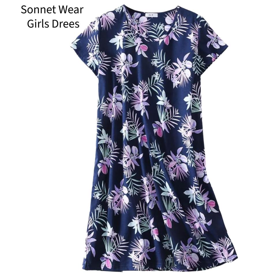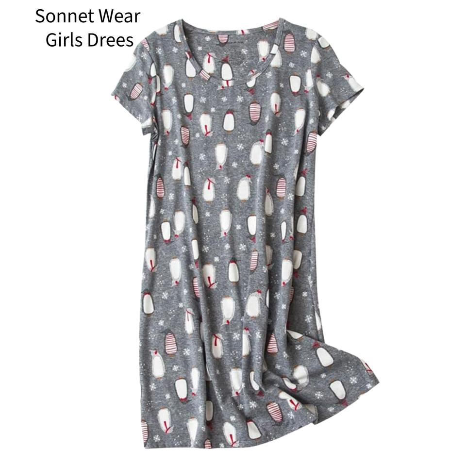 Camisón de Algodón para Niñas, Talla Grande, Manga Corta, Cuello Redondo