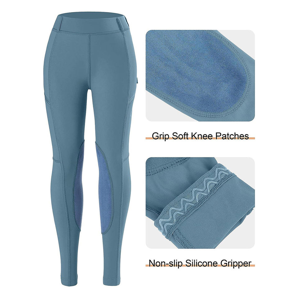 Pantalones de equitación para niñas con bolsillos con cremallera Jodhpur y calzones para niños con parches de rodilla de piel de ante tobillos de silicona