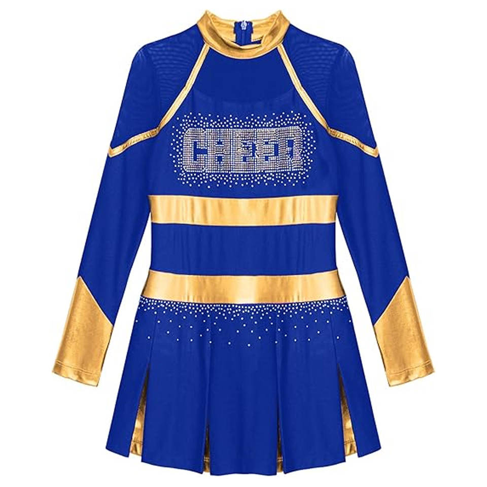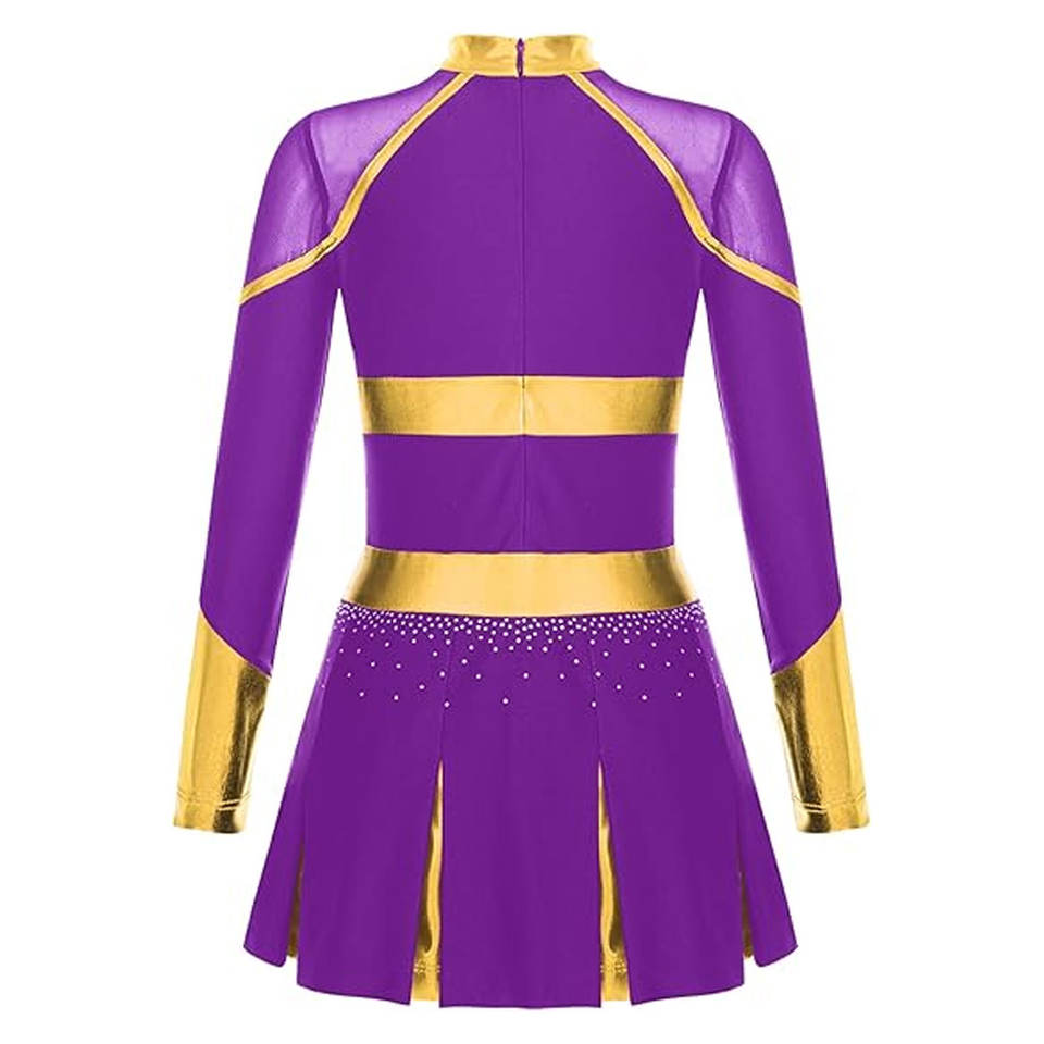 Uniforme de Animadora con Pedrería Brillante para Niñas, Vestido de Baile sin Mangas con Cierre Trasero, Traje Brillante para Actuaciones
