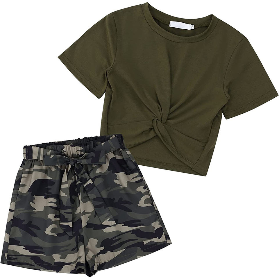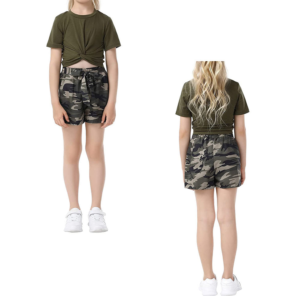 Palabras clave:Conjunto de camiseta y pantalones cortos para niñas