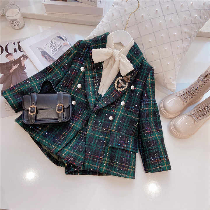 Trajes para Niñas, Primavera 2022, Nuevo Estilo Universitario, Traje de Dos Piezas con Chaqueta para Niñas Pequeñas y Medianas