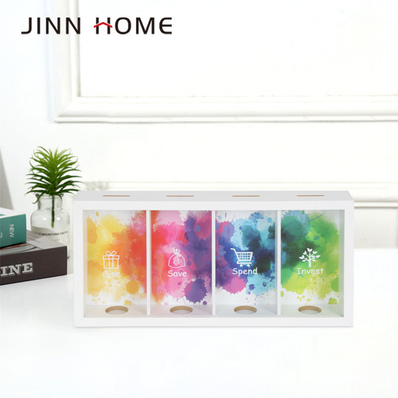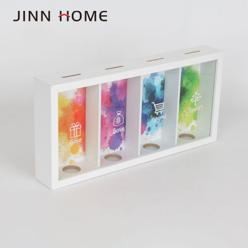 Caja de dinero de madera de 4 secciones