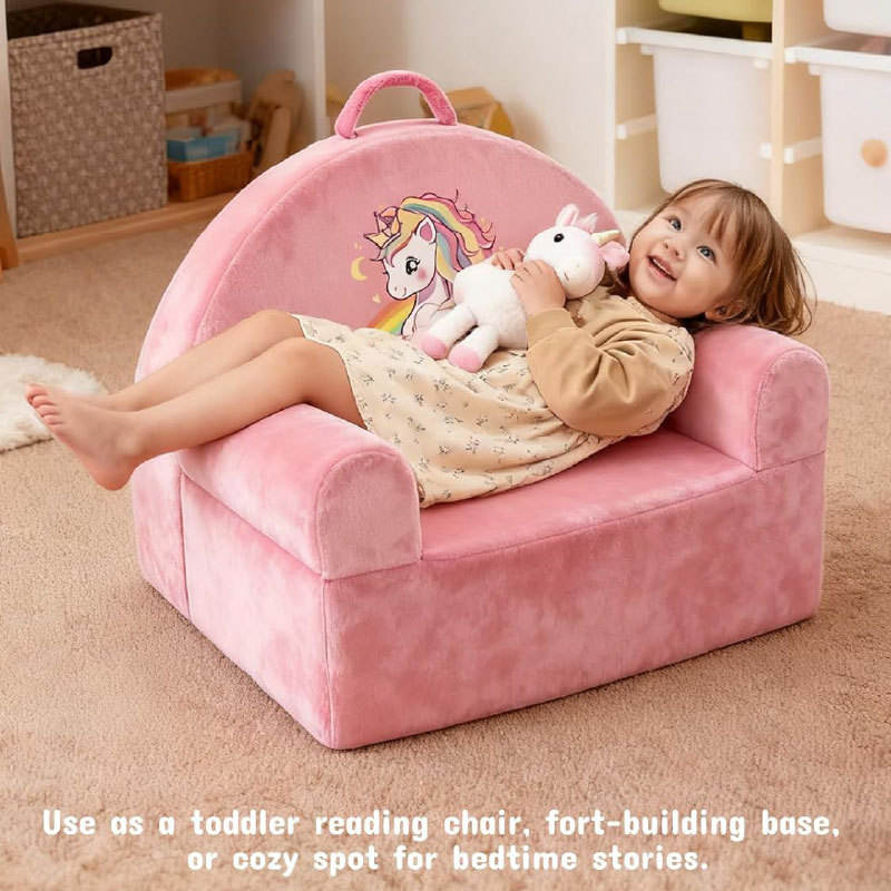 Sillón Infantil Plegable con Diseño de Unicornio Rosa para Niños de 3 Años en Adelante