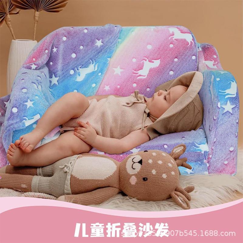 Sillón Infantil Plegable con Diseño de Unicornio Arcoíris de 65 cm, Cama para Siesta de Bebés, Cojín Suave para Niños Mayores de 3 Años