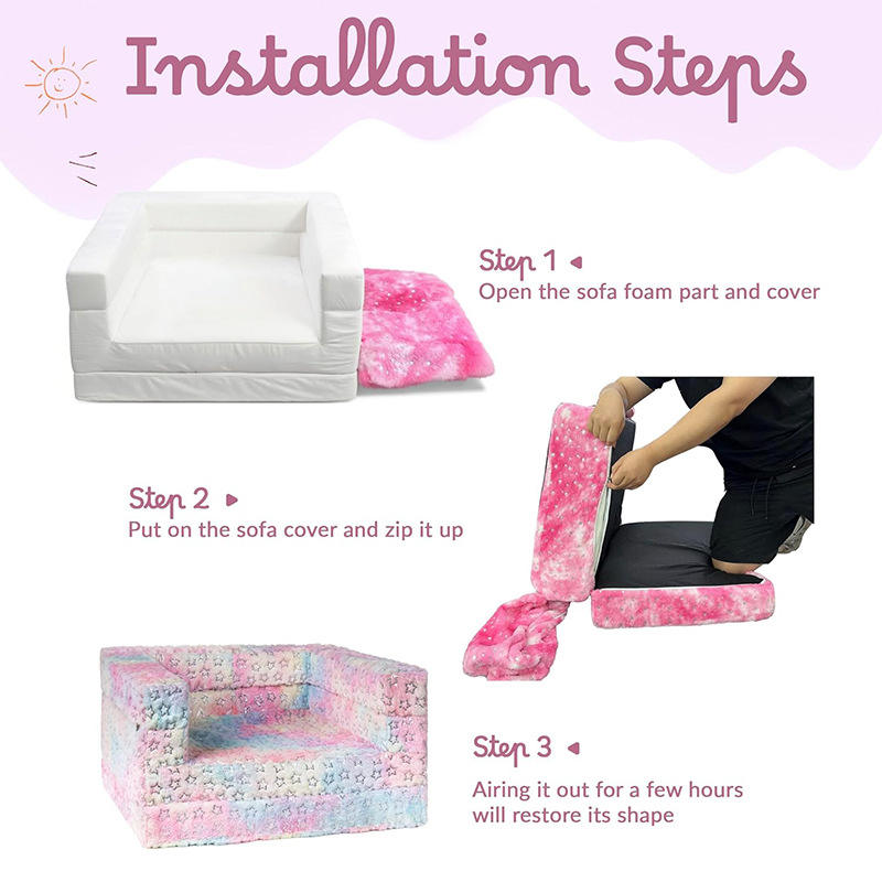 Sofá Infantil Plegable con Diseño de Arcoíris y Estrellas, Silla con Cojín Suave para Niños de 3 Años en Adelante