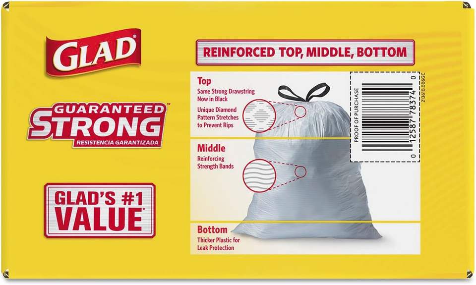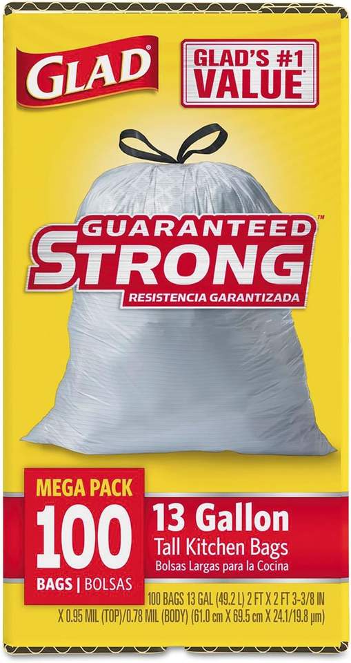 Bolsas de Cocina Altas con Cordón Glad 78526, 24 x 27 3/8, 13 galones, 0.95 mil, Blancas, 100 por Caja