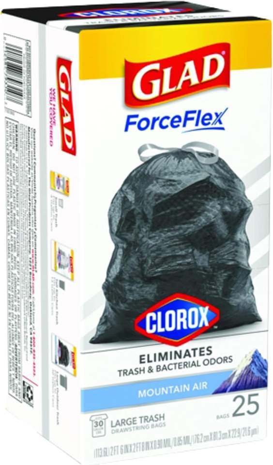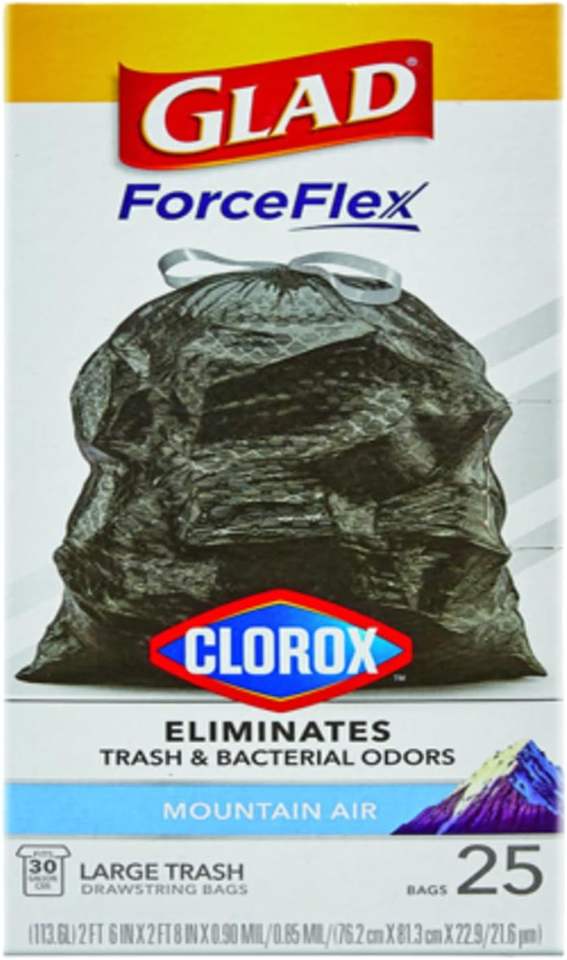 Bolsas de Basura Glad Force Flex de 30 Galones con Aroma a Aire de Montaña, con Cordón, 25 Bolsas (Paquete de 6)