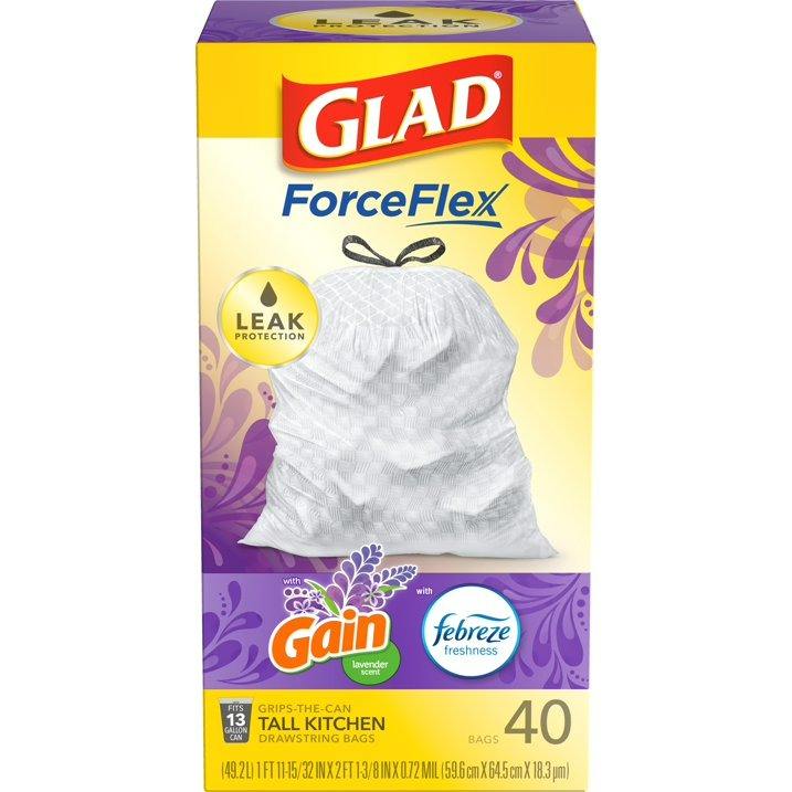 Glad ForceFlex Bolsas de basura de cocina de 13 galones de altura, ganancia de lavanda, 40 bolsas