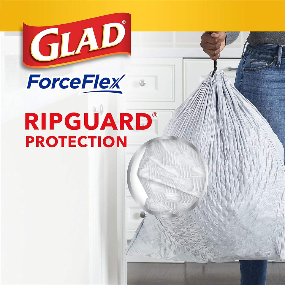 Bolsas de Basura Glad ForceFlex Altas para Cocina con Cierre de Cordón - Frescura con Febreze, 160 Unidades/13 Galones