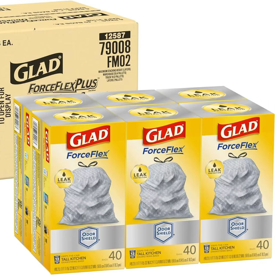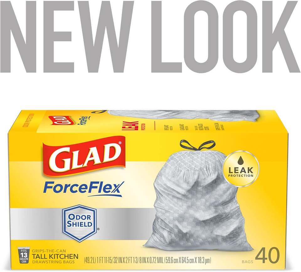 Bolsas de Basura Glad ForceFlex Altas para Cocina con Cierre de Cordón - OdorShield - Capacidad de 13 Galones - 23.74 Pulgadas de Ancho x 24.88 Pulgadas de Largo - 0.72 m