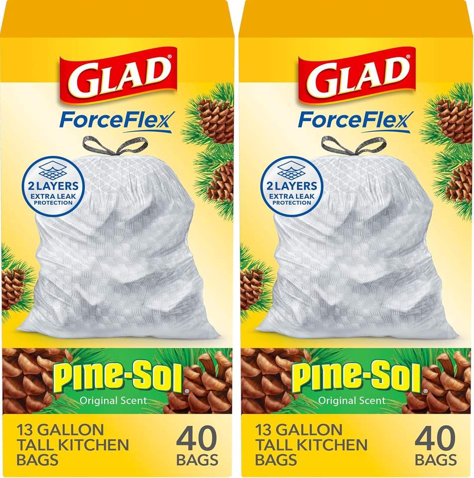 Bolsas de Basura Glad ForceFlex Altas para Cocina, con Cierre de Cordón, 13 Galones, Aroma Pine-Sol Original, 40 Unidades (Paquete de 2)