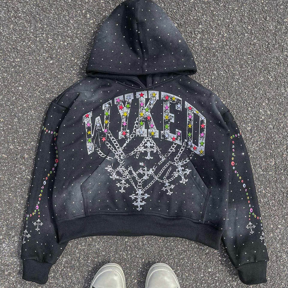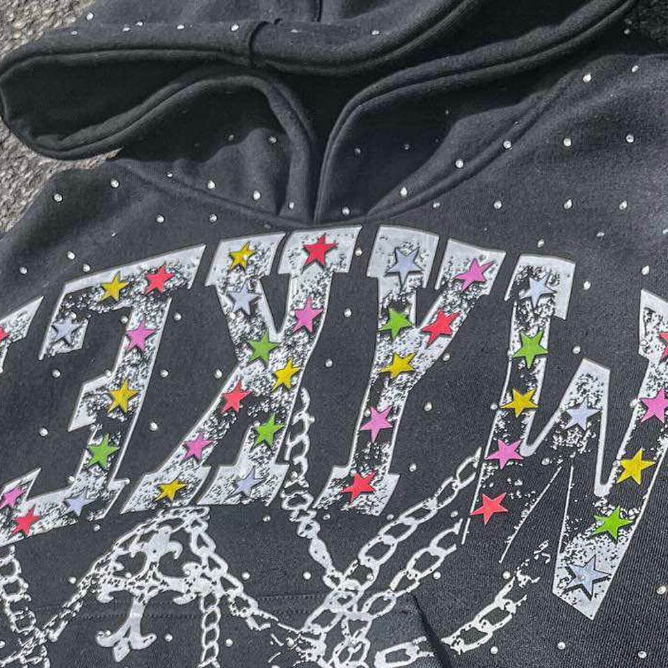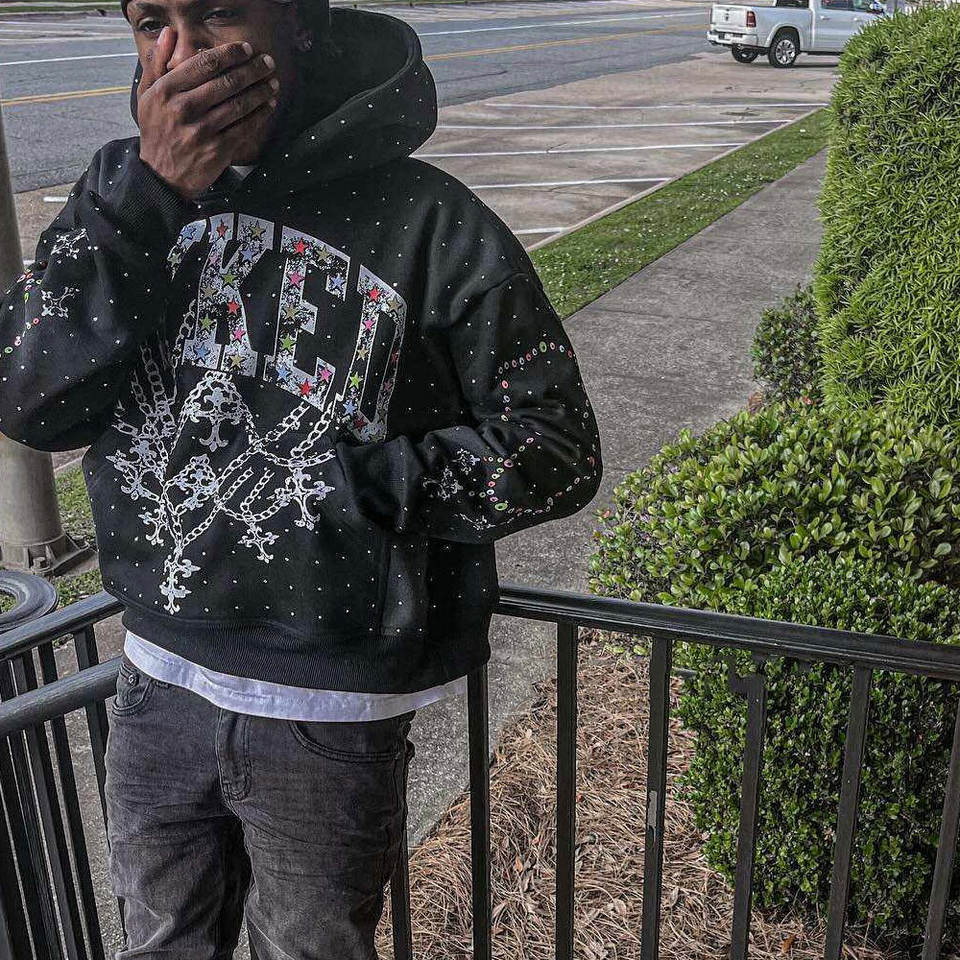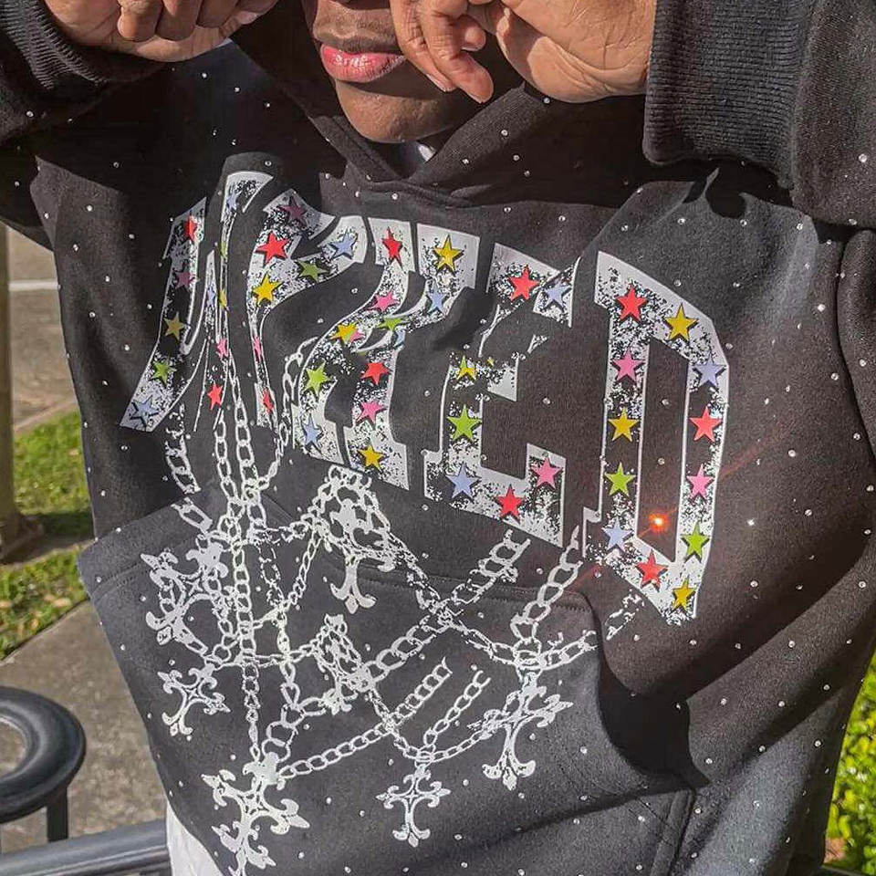 Sudadera con Pedrería Glam Street Edit, Estilo Urbano Brillante, Mezcla de Algodón, Ropa Urbana Moderna