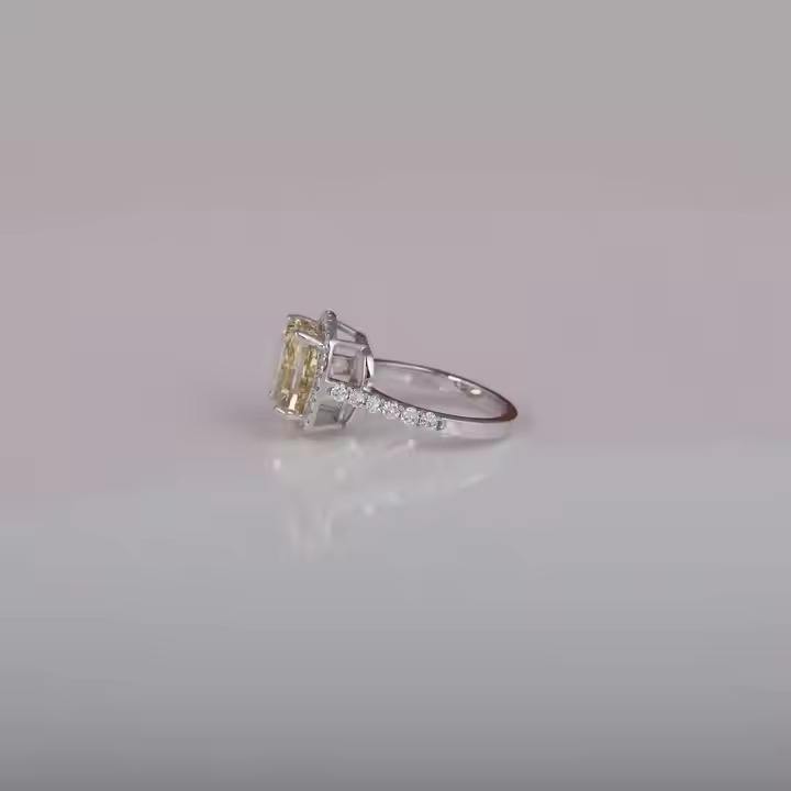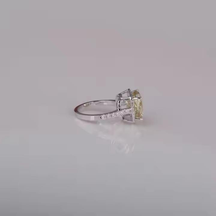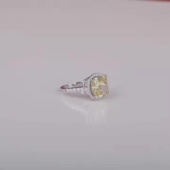 Glamorous 14KT Chapado en oro sólido Impresionante laboratorio creado Cojín amarillo Anillo de compromiso de diamantes para niñas